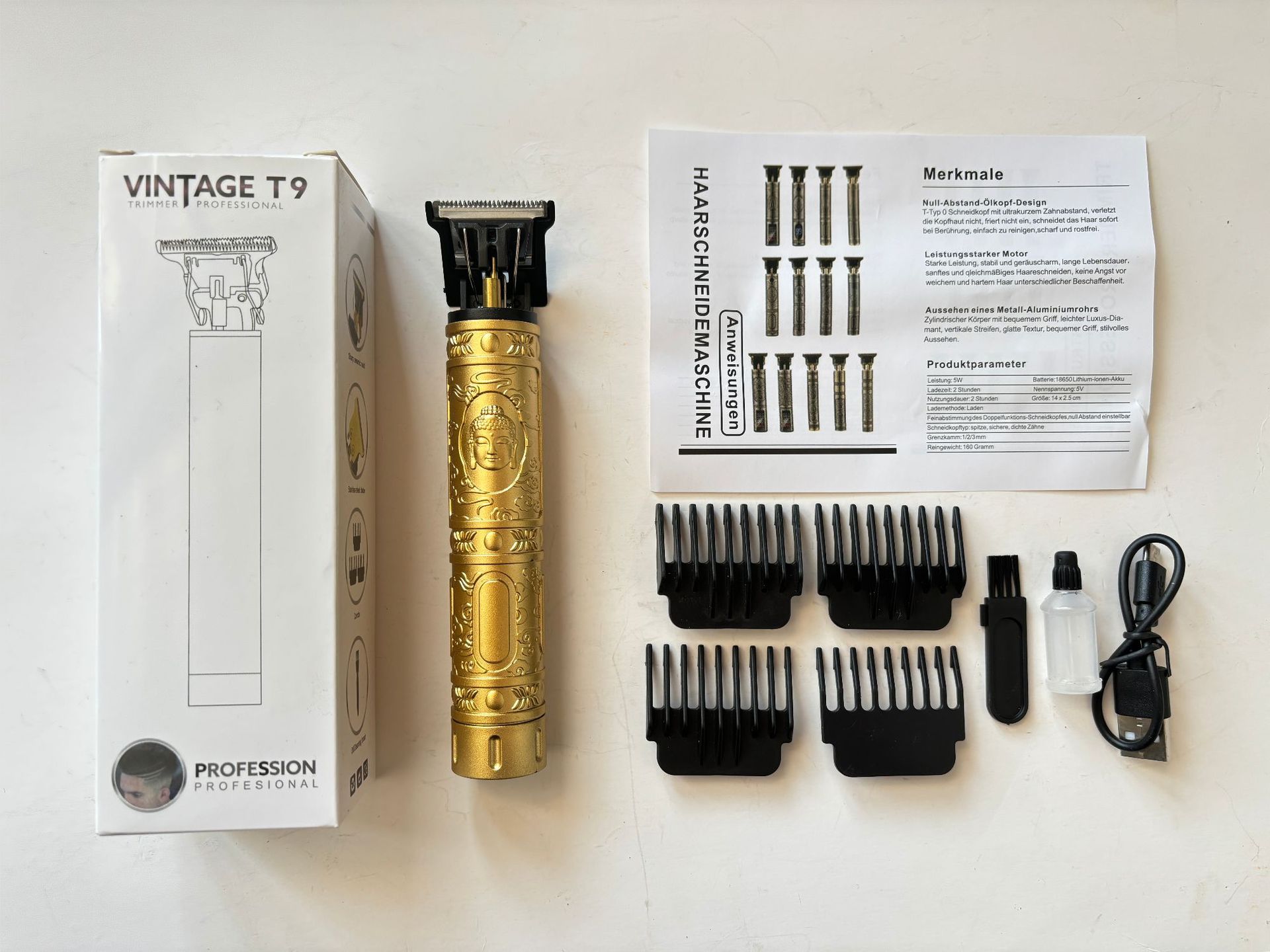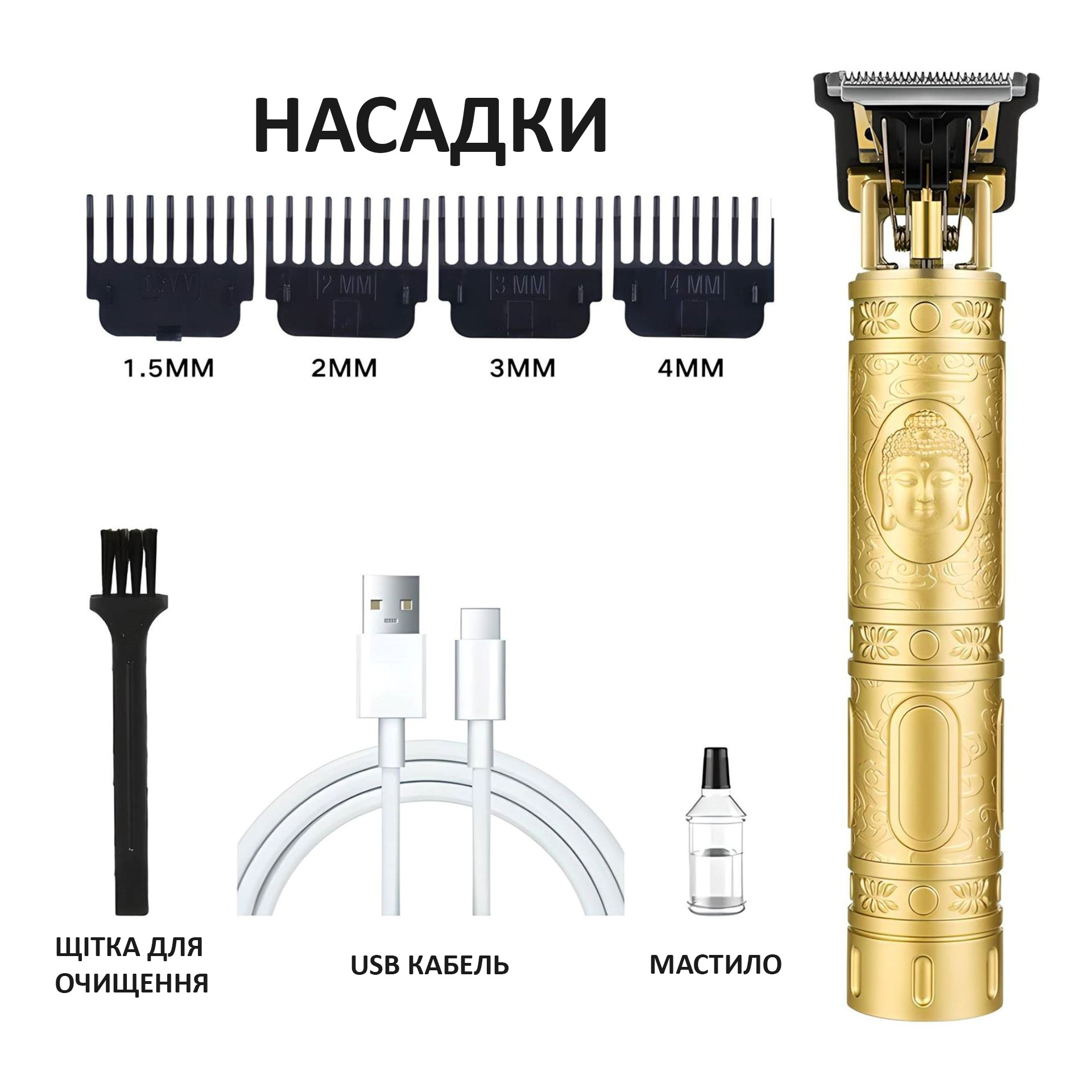 Набір включає все необхідне для догляду. 4 змінні насадки (1.5, 2, 3, 4 мм) дозволяють регулювати довжину стрижки. У комплекті також є USB-кабель для заряджання, щіточка для очищення та мастило для догляду за лезом.